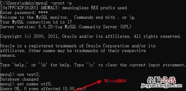 这种方式先登录MySQL数据库,然后选择需要导入的DB,最后再直接使用source命令导入sql脚本即可,如果没有任何错误信息输出,则说明sql脚本导入成功: