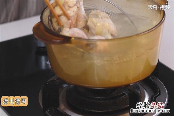 2.鸡翅根冷水下锅焯水1分钟,捞出待用 。