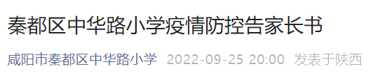 秦都区中华路小学疫情防控告家长书
