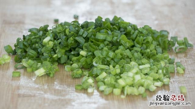 4、再来切一把小葱,切成葱花后先装起来备用,再来一块儿生姜切成姜片;