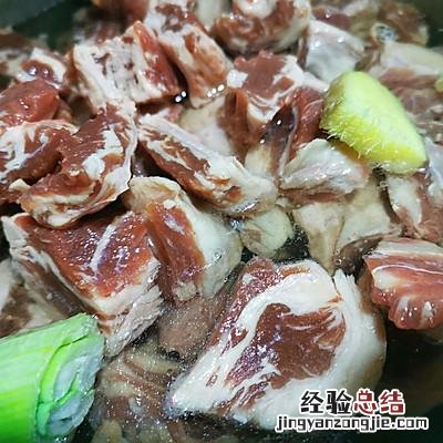 1、牛肋条切块,冷水下锅,放葱姜,料酒焯水,焯出血沫,把肋条清洗干净 。