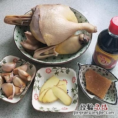 1、先将鸭肉冷水下锅 , 加姜片焯水 , 洗净备用 。另外准备好做卤水的调料:酱油、带皮蒜头、姜片、片糖~