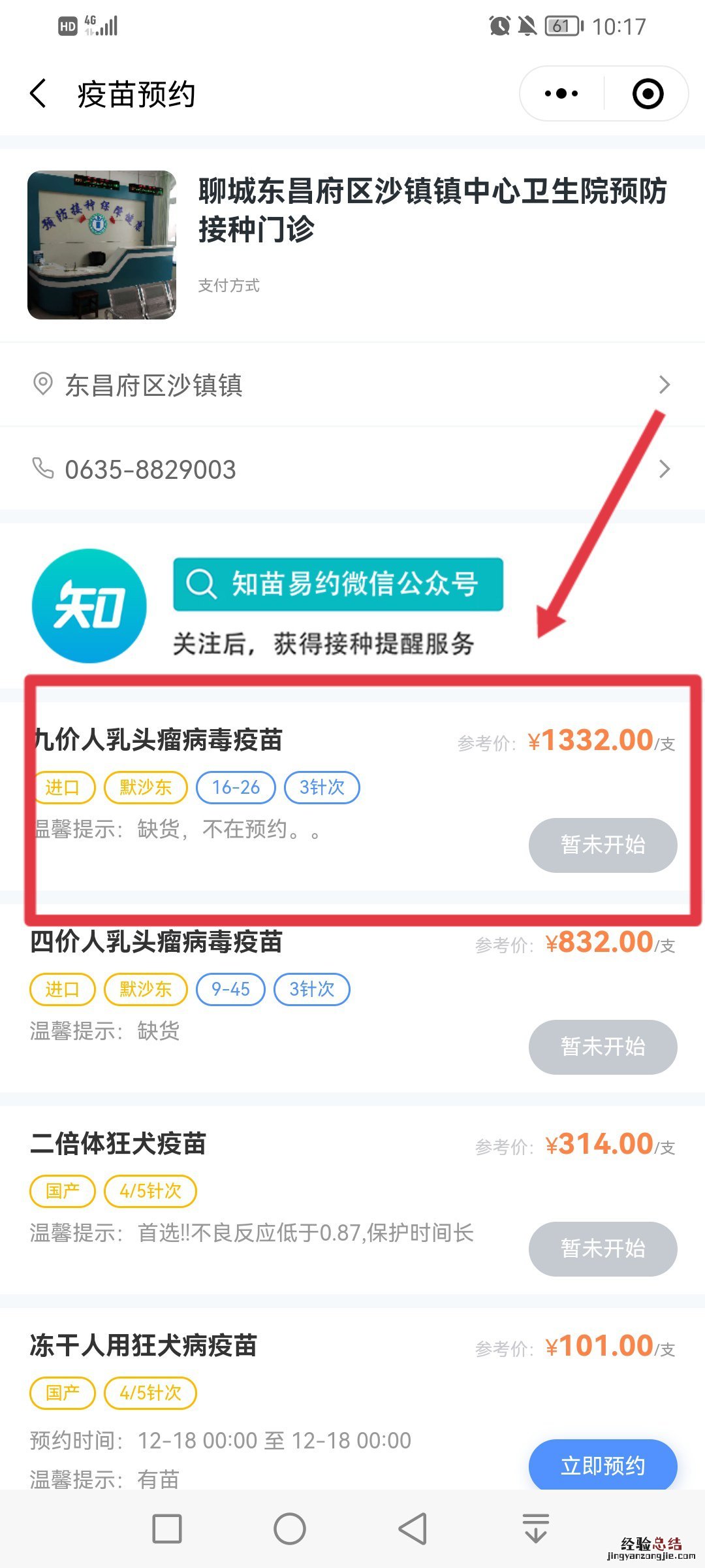 3、进入页面后点击【HPV九价】,聊城各个九价疫苗接种点信息会显示出来