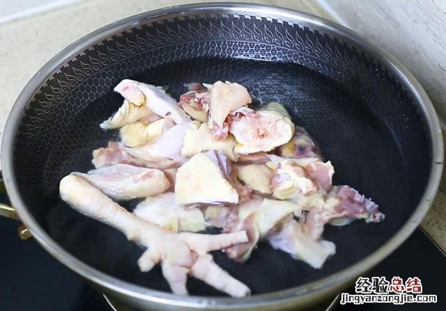 3、要用冷水下锅焯水,如果是开水下锅,经过高温烫一下就会把鸡肉的表面迅速缩紧,只有冷水慢慢加热才能把血水完全煮出来 。