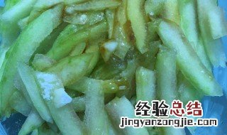 5、将调好的味汁淋在西瓜皮上,拌匀后,再腌制2小时后食用更加入味 。