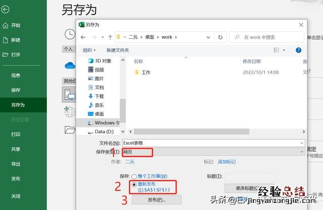 首先需要将Excel表格文件另存为网页 , 保存类型选择“网页”、勾选底部发布区域为表格区域(非整个工作簿),接着点击2次“发布”即可 。