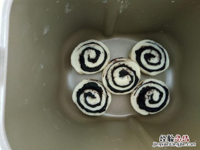 9.第三层排入5个面团,每层面团之间错开排列 。盖上面包机盖,发酵大约1小时20分钟左右 。
