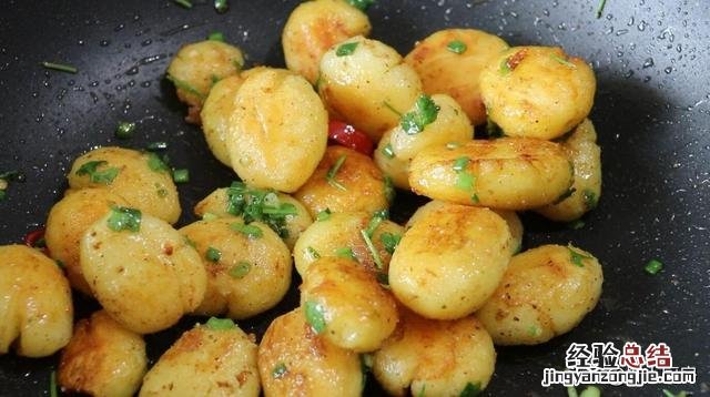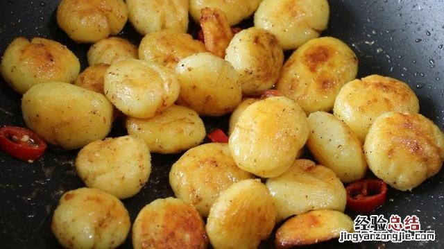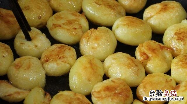锅内倒油,放入小土豆小火煎至,煎到小土豆两面发黄,随后倒掉锅内多余的油,撒上椒盐调味 。
