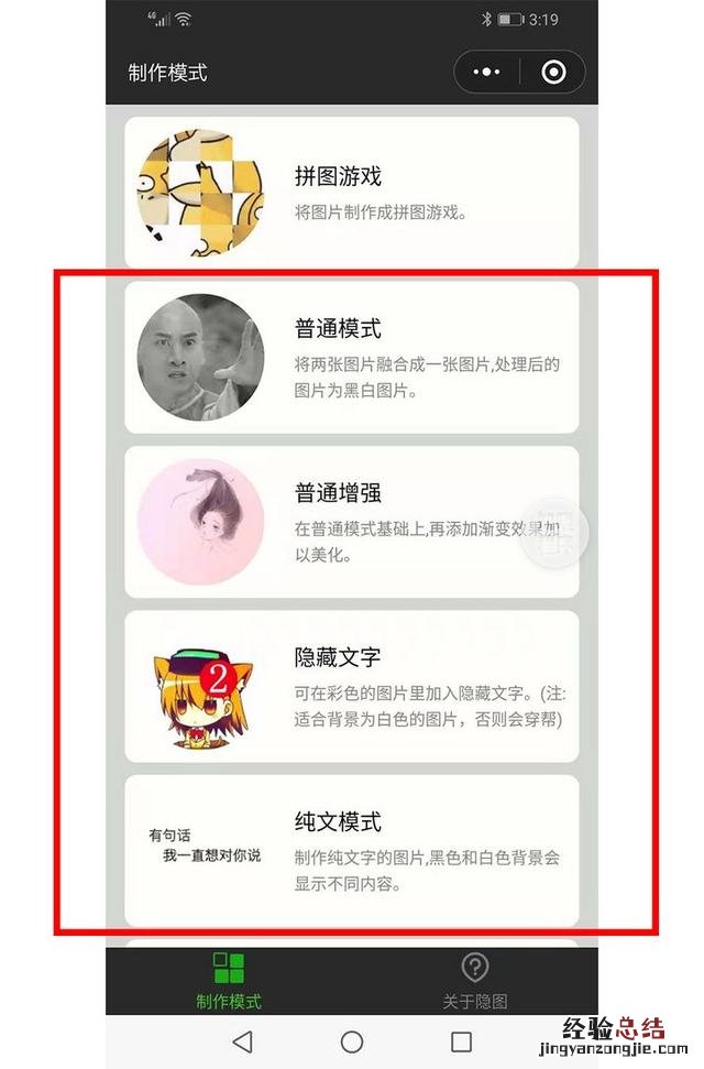 既有普通的黑白模式,也可以用「普通增强」在头像上添加一层渐变色 , 用「隐藏文字」实现头像藏字,用「纯文模式」实现不同底色时显示不同内容 。