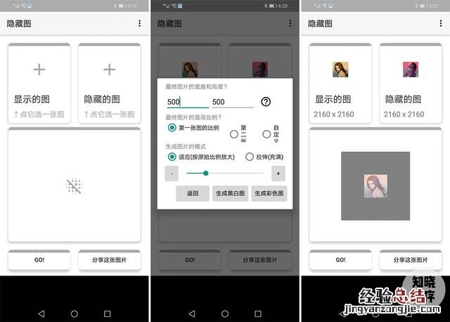 5. 打开《隐藏图》app,将制作好的两张头像图分别放入「显示的图」和「隐藏的图」 。