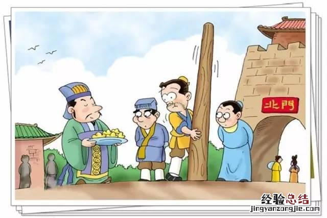 春秋战国时,秦国的商鞅在秦孝公的支持下主持变法 。当时处于战争频繁、人心惶惶之际 , 为了树立威信,推进改革,商鞅下令在都城南门外立一根三丈长的木头,并当众许下诺言:谁能把这根木头搬到北门,赏金十两 。