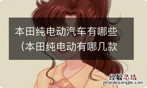 截至目前 , 本田旗下纯电动汽车有:广汽本田理念VE-1一款车型 。该车基于本田缤智打造而来 , 它也是广汽本田推出的首款纯电动车,定位于纯电动小型SUV 。