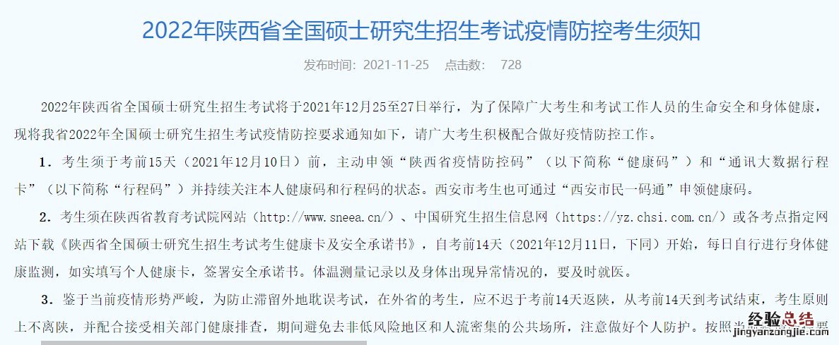 【陕西研究生考试防疫要求 陕西省考区防疫要求】2022年陕西省全国硕士研究生招生考试疫情防控考生须知: