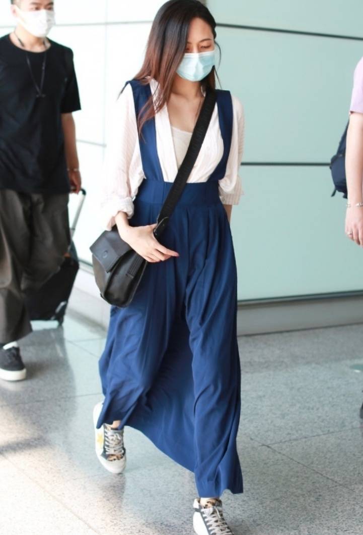 即日刘惜君现身机场装扮休闲 , 却是一脸的疲钝 , 惹起了人们的眷注 。 咱们看到刘惜君身穿戴一身蓝色的背带裙 , 上半身搭配的是一件相对慎重的白衬衫 , 把衬衫内部还搭配着一件白色的内搭白衬衫的纽扣 , 解开打造出一种V领的结果 , 暴露了胸前大片的肌肤 , 或是很有勾引力的 。