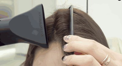 除了烫发,自己也可以动手用吹风机,把根部吹蓬松,比如上面妹子这种吹风的手法,很值得女生们借鉴。自己会吹风造型,省钱又能做出漂亮蓬松的发型,但需要自己掌握基本的技巧。