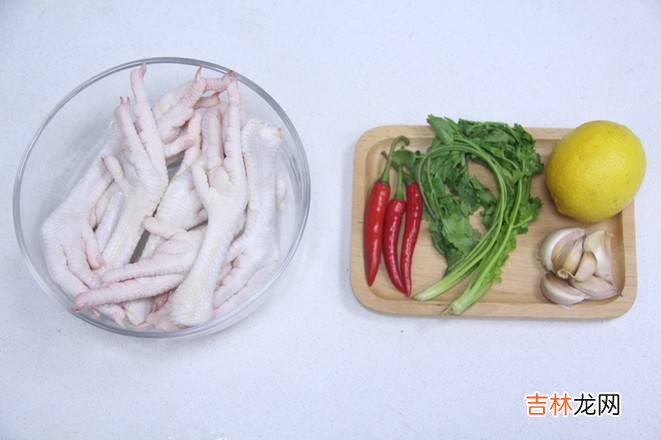 用料:鸡脚500克、蒜适量、柠檬一个、小米椒适量、姜5片、香菜两根、香油两勺、米醋200毫升、生抽200毫升、陈醋少许、料酒少许、白糖适量 。