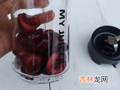 樱桃清净去核,放入果汁机里 。