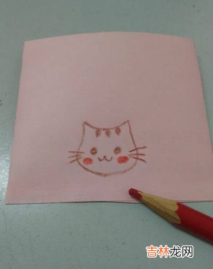 6、用粉色彩笔在嘴的两侧各画一个椭圆形 , 表示它的小脸蛋 。