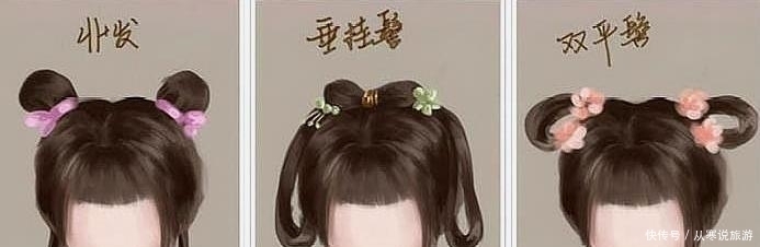 古代女子头发的梳编方法分为结鬟式、拧旋式、盘叠式、结椎式、反绾式、双挂式这六种。又常以发髻的形态和装饰命名。上面三种发髻属于对称双挂式,就是将头顶的头发对半平分,然后梳成对称的款式,挂在头部的两侧,一般是很适合少女的!