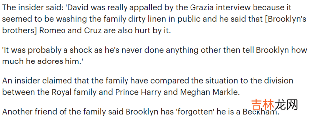据悉 , 贝克汉姆私下里非常伤心 。 从小到大 , 无论布鲁克林做什么 , 他一直都是告诉他“你很棒” , 但如今的布鲁克林已经忘记了他姓“贝克汉姆”