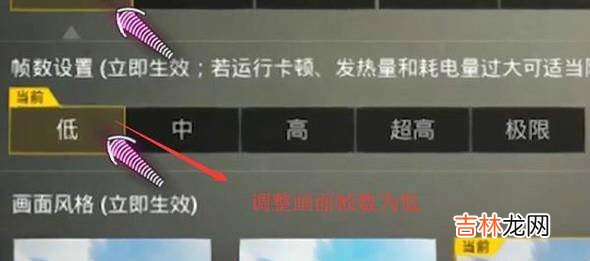 第三、然后在弹出的画面设置界面中我们将帧数调整为低,如下图所示