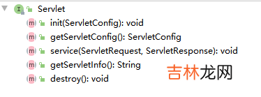 Servlet接口定义的方法,可以看到只有五个方法,包含了初始化,执行业务逻辑,销毁等重要过程 。