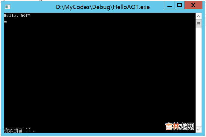 Console.WriteLine("Hello, AOT!");Console.Read();【不安装运行时运行 .NET 程序 - NativeAOT】使用 dotnet 命令进行发布: