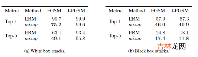 作者对比了原模型和mixup增强模型在对抗样本上的预测误差,验证了mixup可以有效提高模型在扰动样本上的鲁棒性,不过看误差感觉对抗训练可能可以和mixup并行使用,以后有机会尝试后再来补充~
