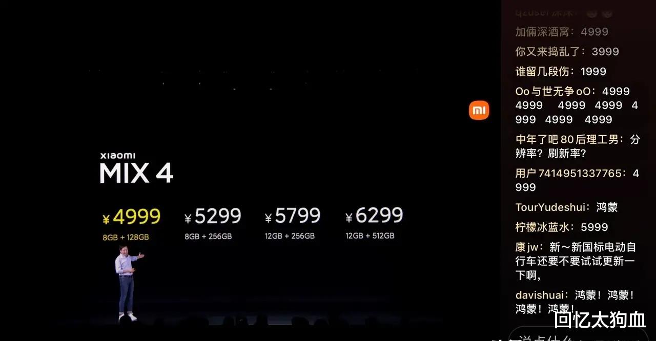 最后是价格方面 , 8G+128G , 4999元;8G+256G 5299元 ;12G+256G 5799元;12G+512G 6299元 , 应该说小米MIX4定价还是比较符合预期的了 。 不过小米雷军也说了 , 由于良品率较低 , 前期供货会比较紧张 , 估计前期想要买的同学 , 只能靠抢了 , 小米MIX4看着还是挺漂亮了 , 小米雷军强调没有刻意的设计 , 就是最好的设计 , 大家喜欢小米MIX4的设计 。 吗 。