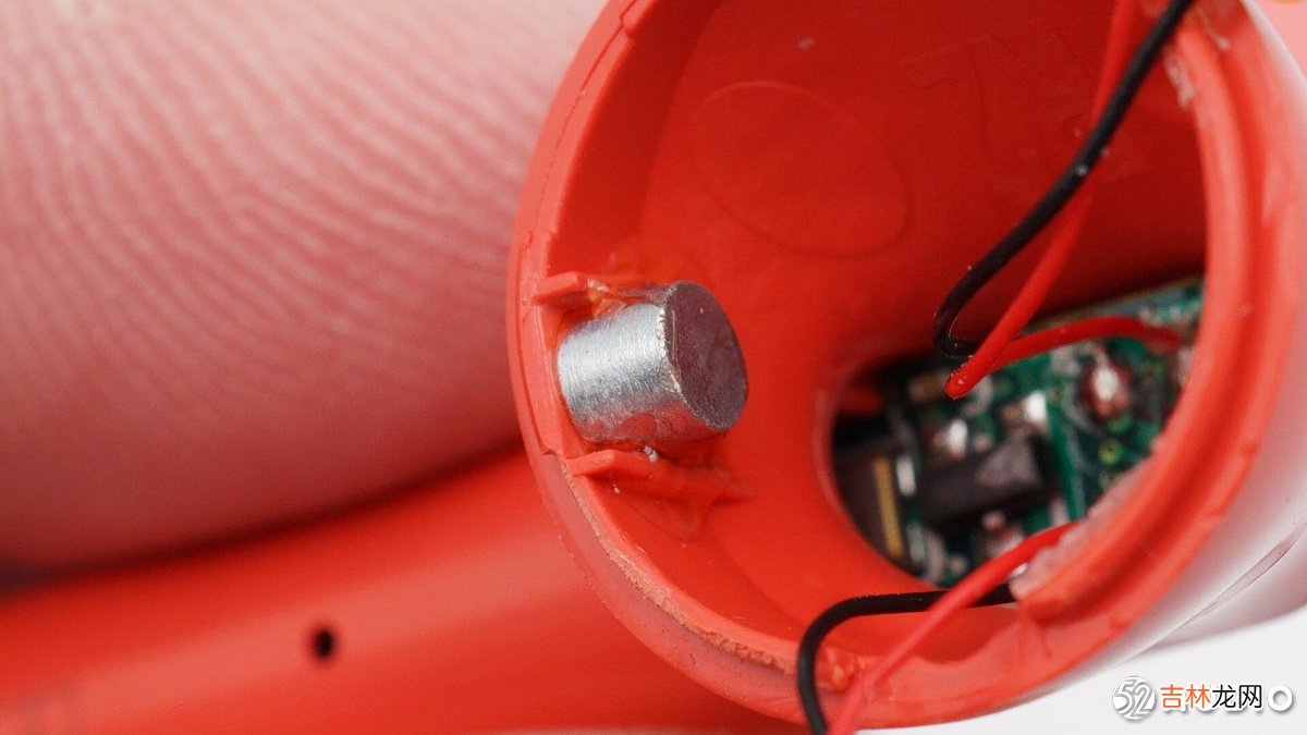 沿耳机内外两侧的合模线拆开耳机,采用条形主板+软包电池+扬声器的结构 。