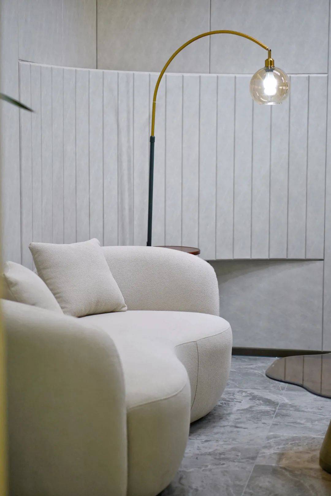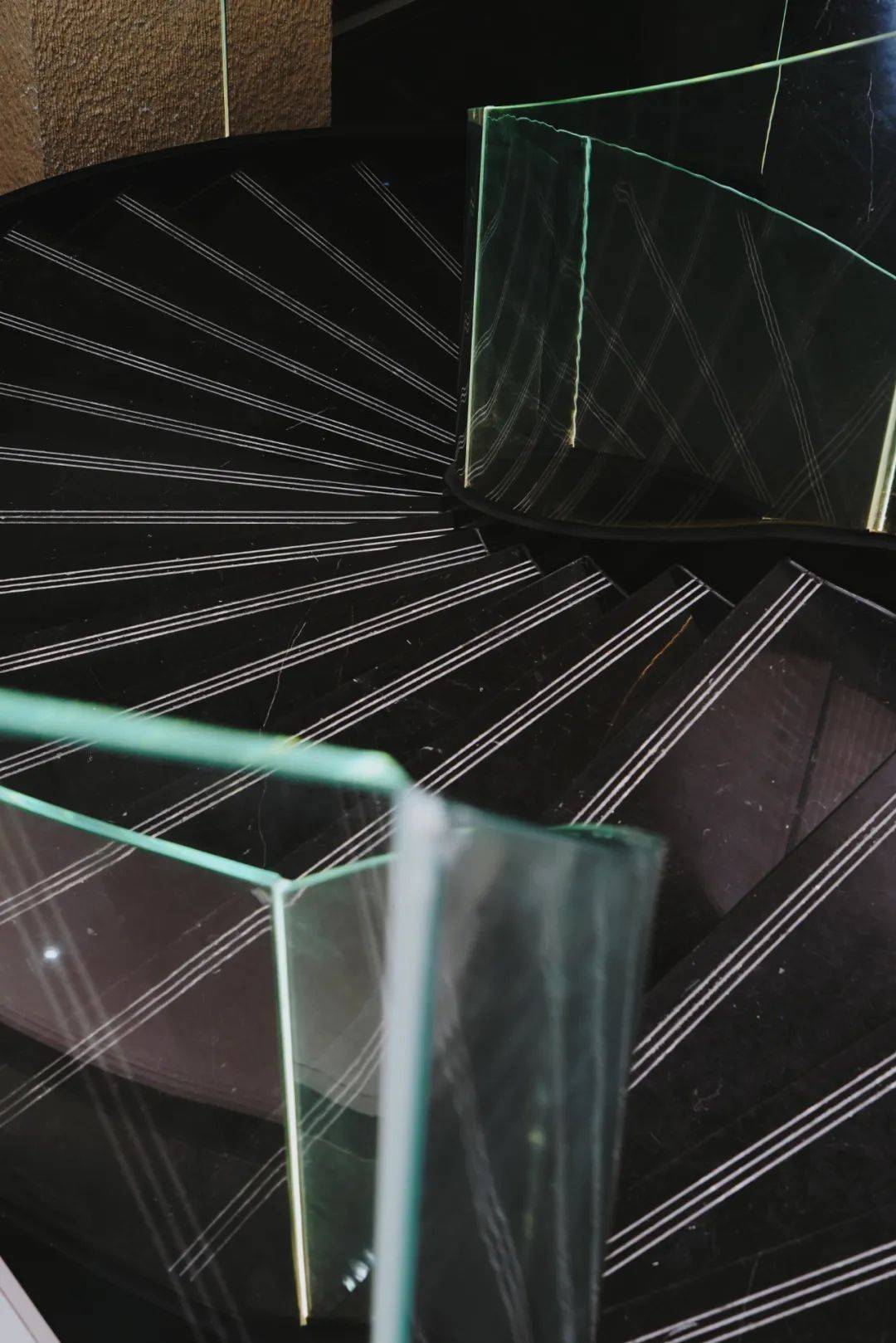 运用了光感玻璃栏杆的旋转楼梯串联起上下两层空间 。 步步梦幻的流光走廊 , 透着自然流动的玉石纹理 , 漫步其间 , 光影流转 。 随处都是拉满的氛围感 。