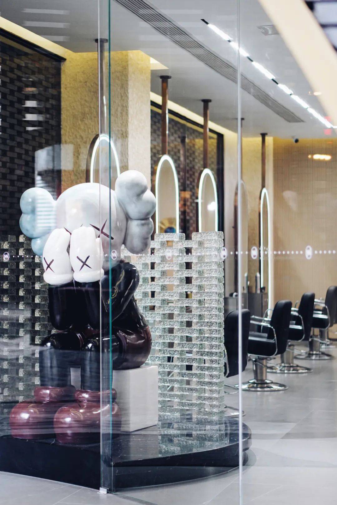 MENICE的内部更藏乾坤 , 延续英国建筑大师、世界解构主义大师-扎哈·哈迪德大师的设计精髓 , 奇妙的曲线被灵活运用在室内里 , 空间感跟着流动起来 。 自然原色石材为基色 , 低调高级 , 冷静内敛却不失热情 。 厚重历史与现代艺术的碰撞 , 门口的kaws公仔早早就“败露”了讯息 。