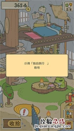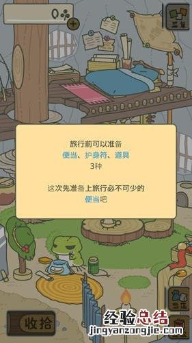 然后我们点击右下角的“房子”返回房间里,在房间里点击左下角的“收拾”按钮,开始为青蛙准备旅行的行李 。
