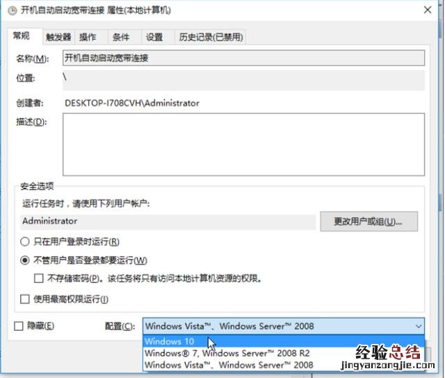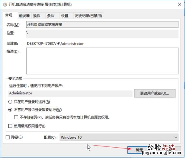 创建任务让 win10 电脑开机自动连接宽带网络!网上很多教程不太完整 , 我在这尽可能描述各种可能的问题 。