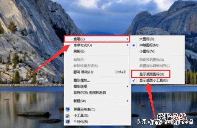 1. 右键点击桌面上的空白区域,点击“查看”,然后点击“显示桌面图标” 。
