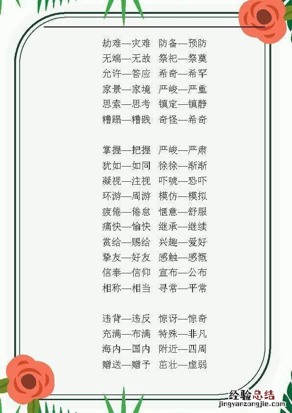 更多完整版、打印版资料都可以通过文末方式领?。? 小学语文:近义词、反义词汇总
