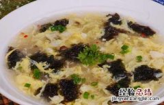 【做法】①将干紫菜放入清水中泡发,洗去泥沙,控干水分 。②把锅洗一洗,锅内加适量水,煮沸 。③将紫菜倒入锅内,先用武火煮沸,转为文火慢煮6至8分钟,加入精盐、酱油、胡椒粉、味精、淋入麻油,再煮一会儿 , 出锅,即可食用 。