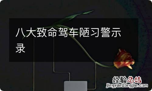 致命习惯1:酒驾对于这一陋习已无需多提,曾震惊全国的多起酒后驾车致死案足以为我们敲响警钟 。在交通事故致死案中 , 酒后驾车足足占据了40%的比例 。据美国汽车协会统计 , 每两分钟就有一起由于酒后驾车酿成的车祸 。小贴士:开车不喝酒 , 喝酒不开车 。当你面对面前的酒杯时,请多想想自己的生命安全,多想想家人,不要让酒精迷惑了头脑 。尽量打车吃饭,或者找亲朋好友开车,有正规的驾驶公司也是不错的选择 。致命陋习二:拒绝安全带 不系安全带开车的坏习惯在中国特别普遍 。当事人总是以行车速度慢为由选择危险驾驶,不喜欢被束缚 。一旦发生事故,他们往往会后悔 。As & # 8220生命带& # 8221;安全带可以在碰撞中提供最有效的保护 。只是在美国 , 每年都因为忽略了这一点& # 8220;生命带& # 8221;多达5000人丧生 。安全贴士:轿车上除驾驶席外,最安全的位置是后排中间位置,其次是后排左手位置、后排右手位置和副驾驶 , 但无论坐在车上的哪个位置,都要第一时间系上安全带,否则再安全的车也等同于零 。另外 , 不要使用安全带插片来消除警告音,这等同于放弃被动安全保障 。致命习惯3:疲劳驾驶在公路货运中,由此引发的交通事故频频发生,为了能够及时到达目的地、多赚些钱 , 货车司机们开夜车是家常便饭 。如不及时休息,驾驶员各类反应都会变得迟钝,遇到危险来不及应对,由此酿成惨剧 。安全:驾驶1-2小时后,驾驶员应适当休息10-20分钟 。他们还可以在开车前喝杯咖啡,嚼点口香糖,这些都可以提神 。致命陋习四:开赌气车 毕竟,不是每个人都能像舒马赫一样分心驾驶 。一旦开着斗气车 , 得意忘形的车主往往会忘记如何快速规避危险 。根据美国汽车协会的调查,每年至少有1500人因愤怒驾驶或交通纠纷而重伤甚至死亡 。安全贴士:万事和为贵,退一步海阔天空 。对于那些不自觉的车主,完全没必要理会,哪怕有些小冲突,一面之缘 , 何必如此较真呢? 致命习惯5:开车时发短信在美国,政府已明令禁止开车发短信,成效显著 。在此之前,美国每天有上千起事故由此引发 。不得不承认,相比前方的道路,小小的手机屏幕确实更能吸引某些驾车者的眼球 。安全:上车接打电话前请将耳机连接到手机上,开车时忽略身边的手机 。其实真正急需你的人是不会选择短信的 。致命陋习六:超速驾驶 根据美国汽车协会的调查 , 在所有的追尾和致命碰撞事故中,超速行驶造成的事故分别占13%和33% 。安全贴士:我们不是在不限速的德国开车 , 超速既会增加危险系数,还有被罚的可能 。建议与同行车保持相同车速,有限速功能的车型尽量激活此功能 , 发挥及时警告的作用 。致命习惯7:低估天气【八大致命驾车陋习警示录】据美国加州大学伯克利分校调查显示,高速路上的致命车祸中,有20%是恶劣天气引起的 。前不久省城大范围降雪 , 路上随处可见的追尾事故证明了恶劣天气行车的危险性 。安全:雨雪天行车,一定要慢行,保持车距,低速行驶,可以腾出紧急制动的空间 。此外,90%的道路安全隐患是可以视觉感知的,所以视力不好的车主尽量不要在雨雪天或夜间出行,以免增加行车风险系数 。致命陋习八:不用儿童安全座椅 据国家公路安全管理局介绍,汽车的撞击是导致2 ~ 14岁儿童在车内死亡的主要原因 。当发生碰撞时,抱在怀里的孩子产生的向前冲力可高达1吨,因此他经常处于水深火热之中 。安全贴士:儿童乘车特别是长途出行必须使用安全座椅,买车时尽量选购配置有ISOFIX标准儿童安全座椅固定装置的车型,可去正规的汽车用品店或婴儿用品店购买此类座椅 。八龄童意外卷入犁田机身亡