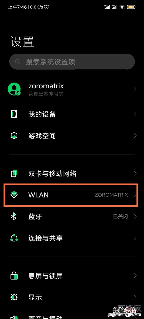 黑鲨4双wifi怎么开1、打开手机【设置】 , 点击【wlan】 。