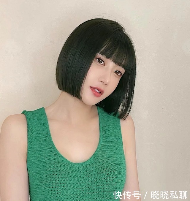 齐下巴的波波头是一款永不落伍的发型,干净利落的边线特别的纯粹自然,搭配齐眉刘海,很美很减龄。