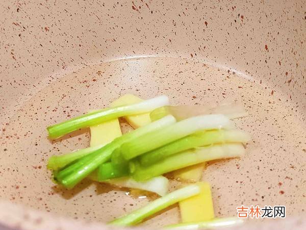 5、放入海参和大葱翻炒 , 再加入高汤、生抽、料酒、盐、鸡精 , 焖煮片刻 。