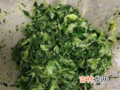 青菜过冷水,冷却后切碎,或者搅拌机搅碎,然后挤掉水分 。