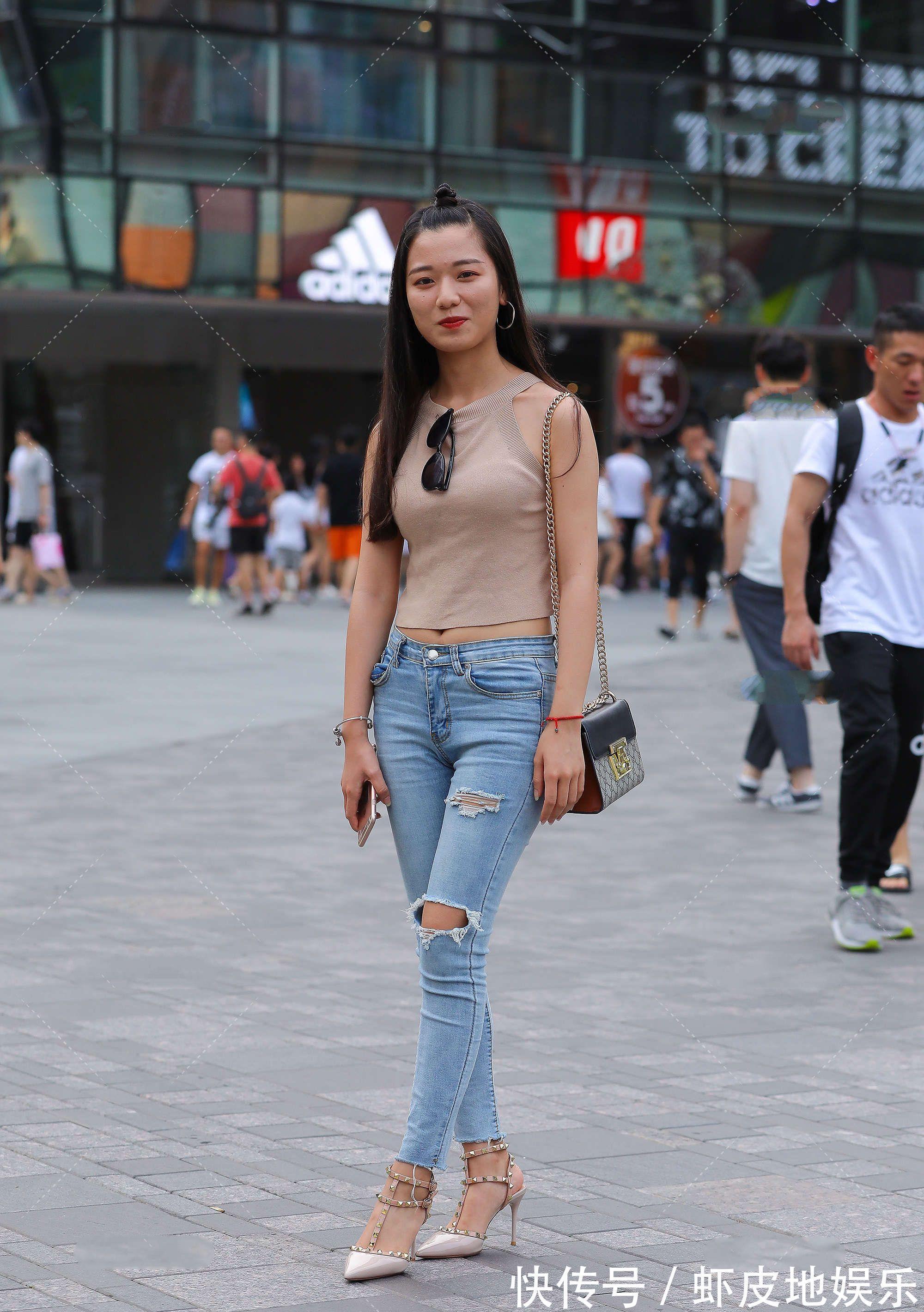 高跟鞋|破洞牛仔裤休闲随意,独特的发型个性十足,穿搭显瘦又时尚
