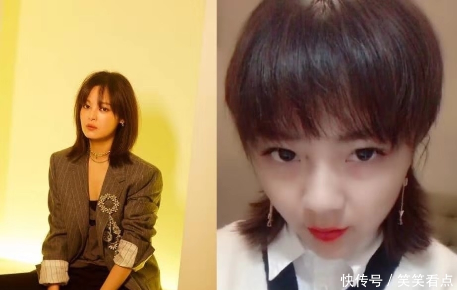 还有董璇女生的这个肉毒切了,和辛芷蕾的发型比较像,但是这个更加的清纯,她这个最大的区别就是在脸的两边有着碎碎的头发,下面是齐 的,有点像辛芷蕾和公主切的结合体,董璇在剪完这个短发之后,气质变的一下很清新动人,也是一款很减龄的发型。