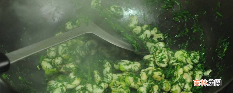 5、锅烧热后,加入适量菜籽油,烧至六成热后,倒入蚕豆 。