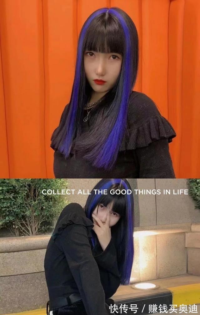 这种黑茶色底色搭配紫色发带染感觉也不错,这种就完全没有唯美只剩辣妹的感觉了。