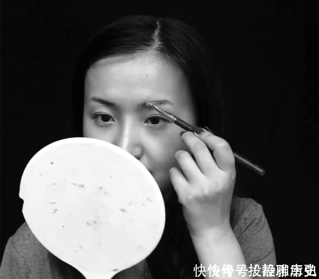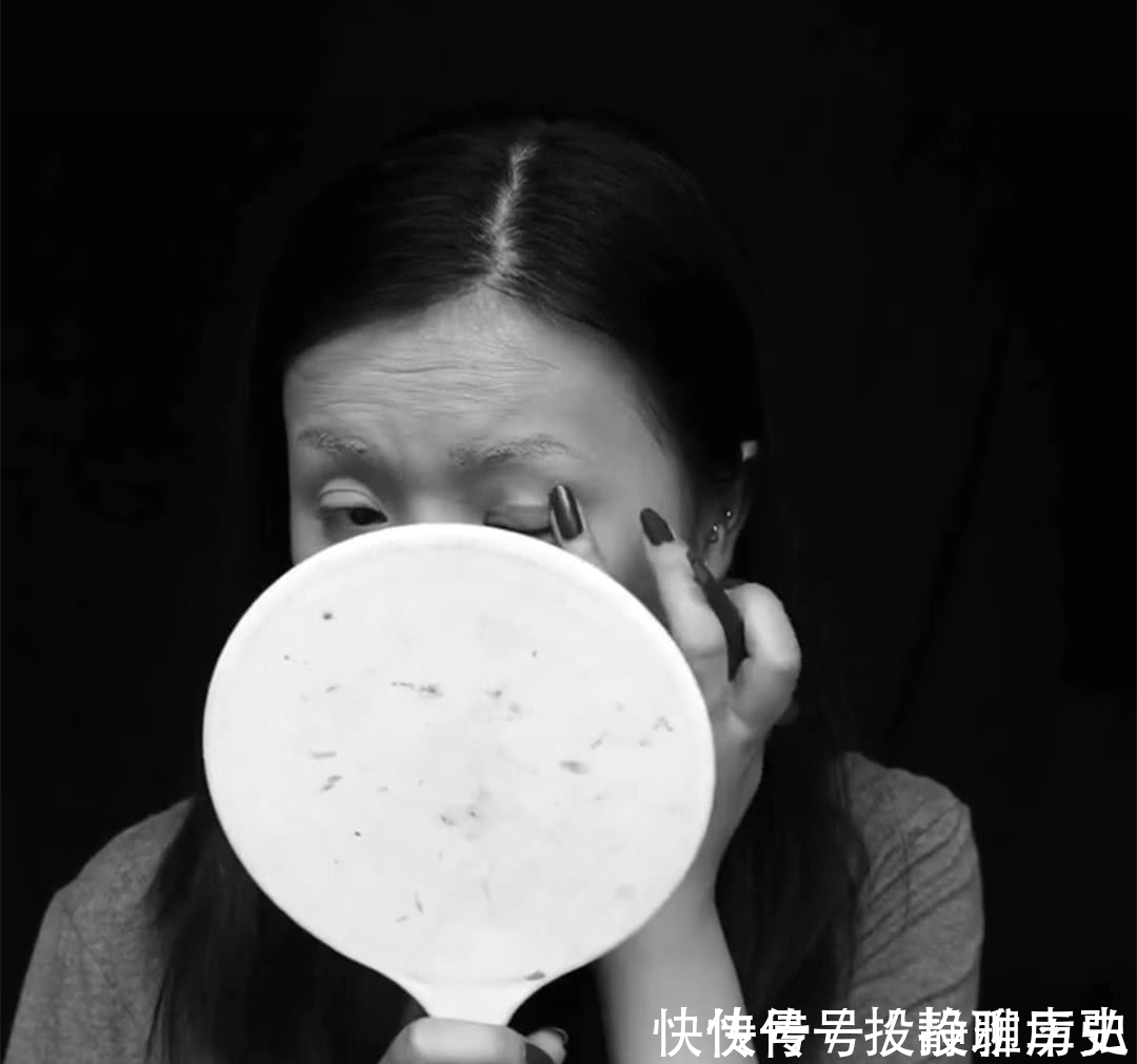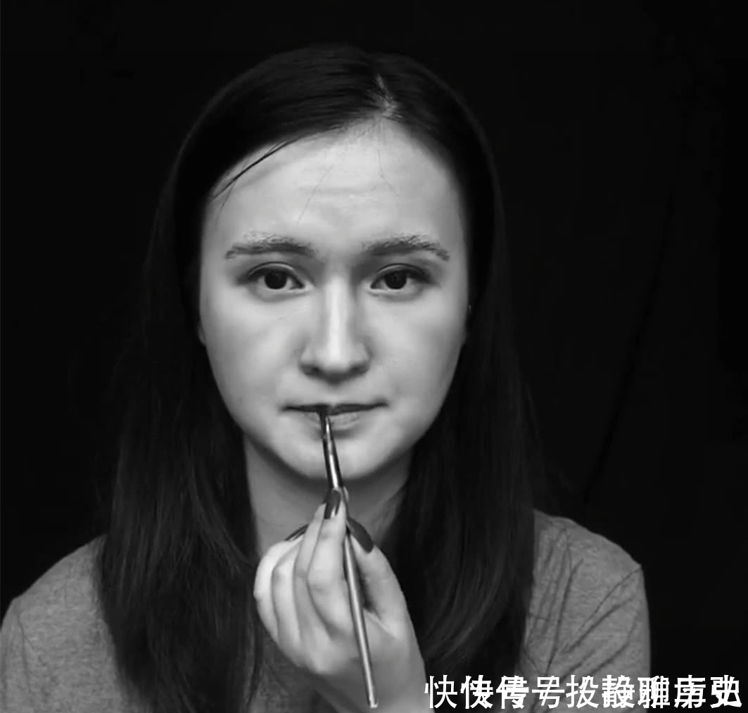 可以看到她画完了眉毛和眼妆之后,又在脸上涂了一些阴影,然后让自己的整个脸看起来就有一些变化,最后在自己的嘴上涂了一些口红。