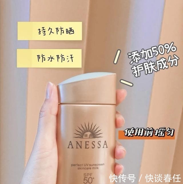 安耐晒防晒霜虽然它是一款网红产品,但是效果一点也不差,上脸成膜快又不搓泥,肤感非常好。安耐晒防晒霜添加了百分之五十的护肤成分,除了可以做到持久防晒和防水防汗以外,还可以水润保湿,功效强大。它可以脸部和身体通用,平时直接使用沐浴露就可以洗除,不用担心会残留在皮肤上的问题。