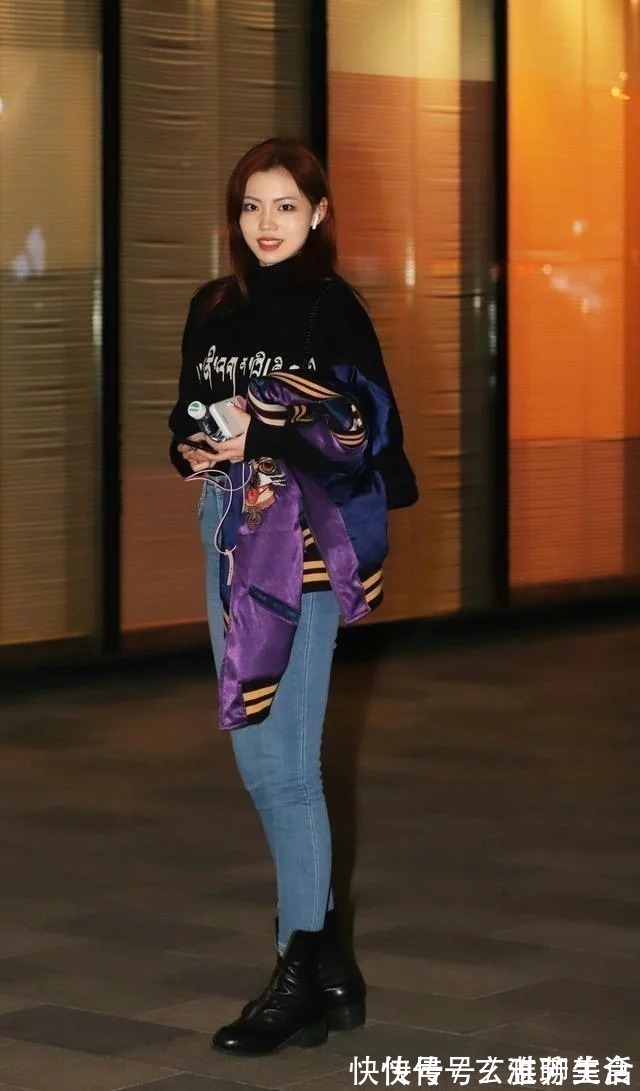 蓝色牛仔裤搭配休闲上衣,美女很有街头的气质感,整体搭配看起来更具活力,看起来简洁大方而又温柔娴雅