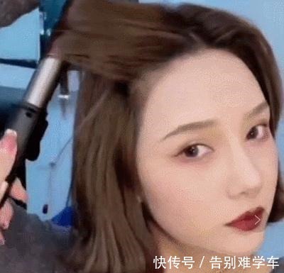 短发姐妹做造型的时候要用23-26mm这种小一点的卷发棒,或者直接用直夹板。用卷发棒做造型的时候,先取颅顶一小撮头发垫高,可以让头发更有空气感。再在发尾的地方来个外扣增加造型感。